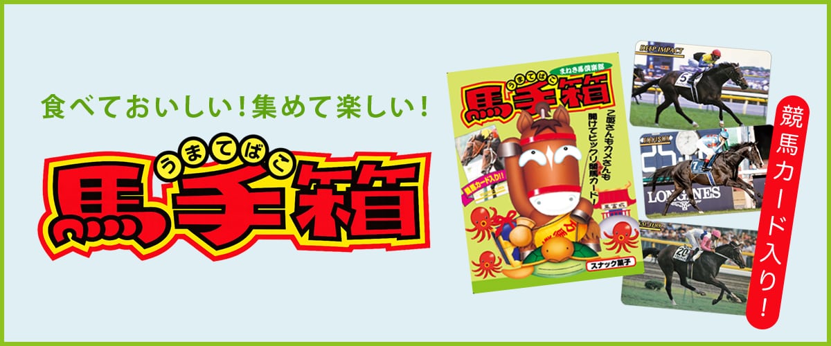 第61弾馬手箱(カレー味)10個セット ■内容:スナック菓子、競馬カード1枚/個 送料込(北海道・沖縄・離島除く)